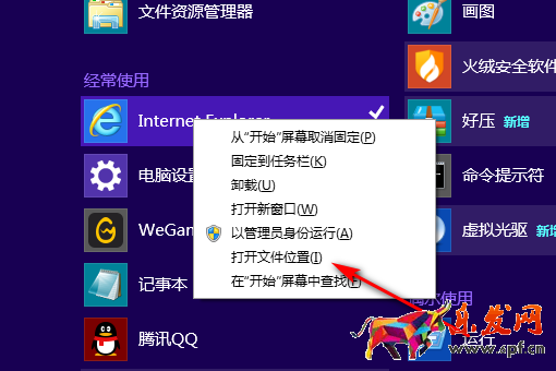 1.右鍵點擊IE瀏覽器,打開文件位置。