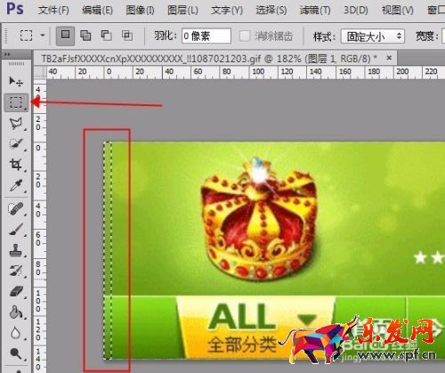 1 用PS打開之前準備好的店招圖片,用矩形選框工具在兩側(cè)的邊取1到5像素,再按快捷鍵Ctrl+C復(fù)制。