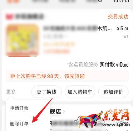 6、然后把所有的訂單都刪除就徹底清除購買記錄,如下圖所示: