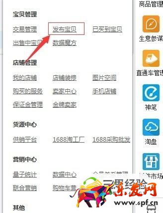在常用網(wǎng)址中可以看見(jiàn)寶貝管理,點(diǎn)擊寶貝管理下面的發(fā)布寶貝。