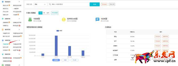 通過店怪獸的大盤監控來分析行業數據,因為生意參謀只能看同類目的市場數據,而店怪獸可以看任意市場關鍵詞的大盤數據。
