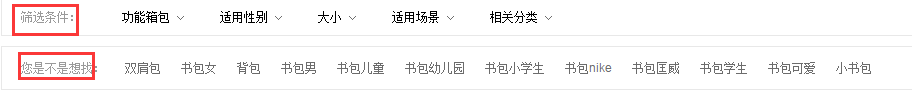 搜索框選詞:搜索框搜索關鍵詞,系統會匹配相應的關鍵詞。比如我搜“書包”,系統會自動出現一堆相關關鍵詞。