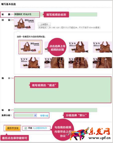 填寫視頻的相關(guān)信息(如圖所示),然后點(diǎn)擊“保存并發(fā)布”。