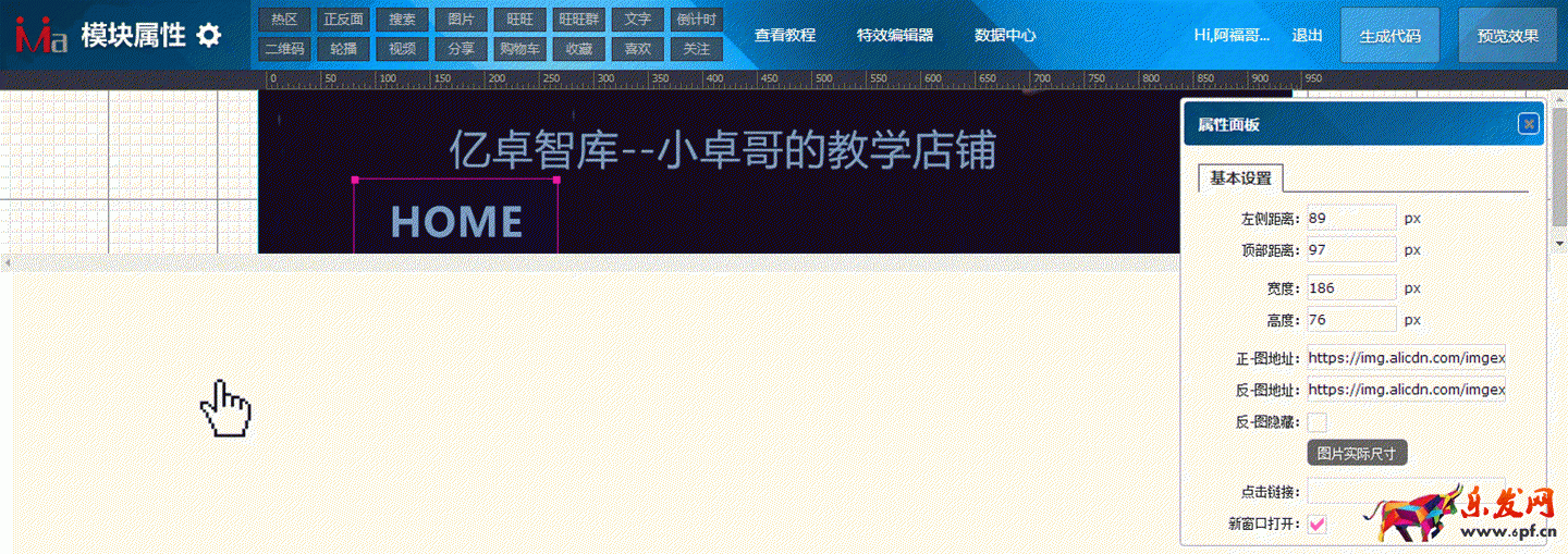 接下來(lái)兩步就OK了,第一步點(diǎn)擊“正反面”,彈出圖片后雙擊,就會(huì)彈出一個(gè)輸入框,將你剛剛在圖片空間里做好的“HOME”和“首頁(yè)”兩張圖的鏈接分別復(fù)制粘貼進(jìn)對(duì)應(yīng)的輸入框里,同時(shí)別忘記要把跳轉(zhuǎn)的鏈接添加進(jìn)來(lái)哦。