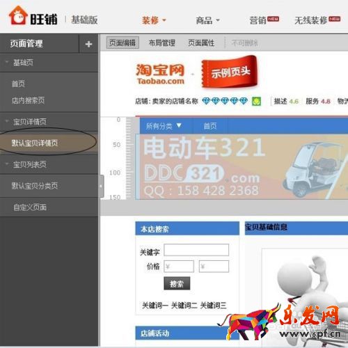 點擊:頁面編輯→寶貝詳情頁→默認寶貝詳情頁;編輯寶貝頁的店鋪招牌,并更換成立想要的招牌;