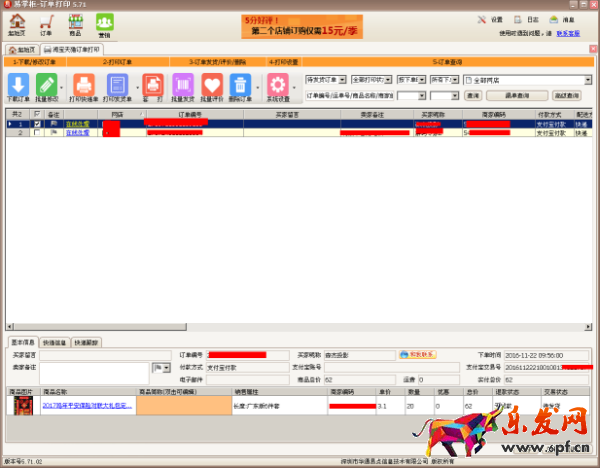 6.打印訂單,選擇要打印的訂單,然后點擊左上角第三個的“打印快遞單”,如下圖所示: