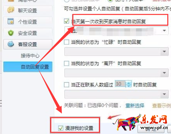 在彈出的界面中選擇“客服設置”- “回復設置自動”