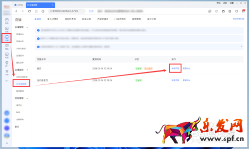 啟動【千牛】,點擊左側(cè)菜單中的【店鋪】,在二級菜單中點擊【PC店鋪裝修】,點擊右側(cè)的【裝修頁面】。