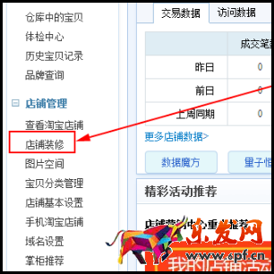 1、進(jìn)入店鋪中心,店鋪管理找到店鋪裝修,如下圖所示: