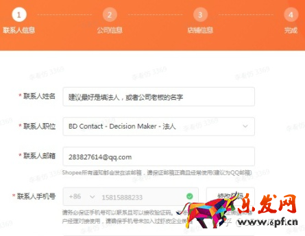 第一次提交申請資料,需填寫以下信息: 聯(lián)系人信息,公司信息以及店鋪信息