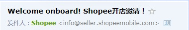 走完上面這一步,Shopee的主要流程算是基本上已經(jīng)完成了。現(xiàn)在要做的事情就是定時查看郵箱中,Shopee官方給我們發(fā)的“歡迎入駐”的開店成功郵件,見下圖: