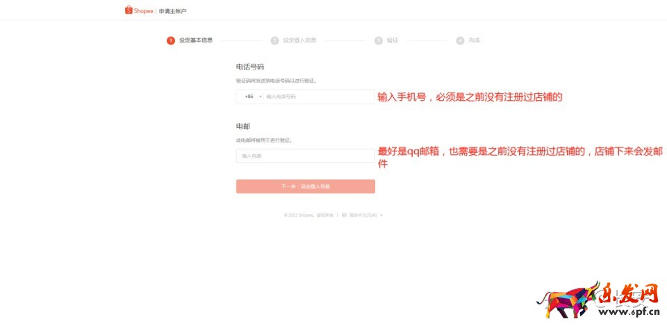 跳轉下一頁:點擊注冊蝦皮主賬號,注意注冊完畢一定要記下來,之前太多學員注冊后就給忘記 了,主賬號相當于你的銀行卡賬號,千萬別小覷了!(如果之前有注冊直接登錄就好!)