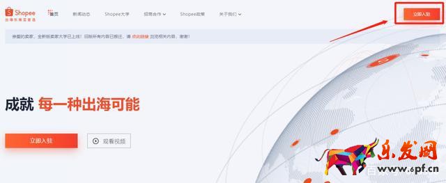 1、首先打開蝦皮官網shopee.cn,點擊右上角“立即入駐”按鈕。如(圖1)所示。