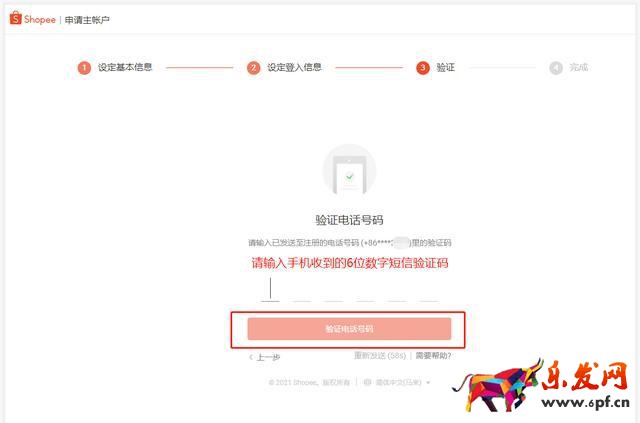 5、主賬戶手機短信驗證。輸入驗證碼之后,點擊“驗證電話號碼”按鈕即可。如(圖6)所示。
