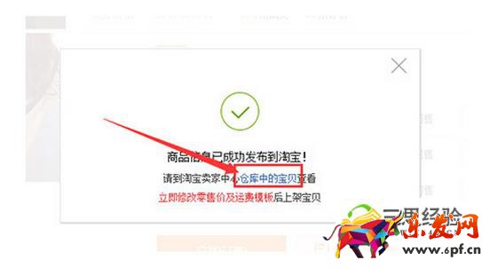 上傳成功后出現如圖提示,點擊【倉庫中的寶貝】進入淘寶倉庫。