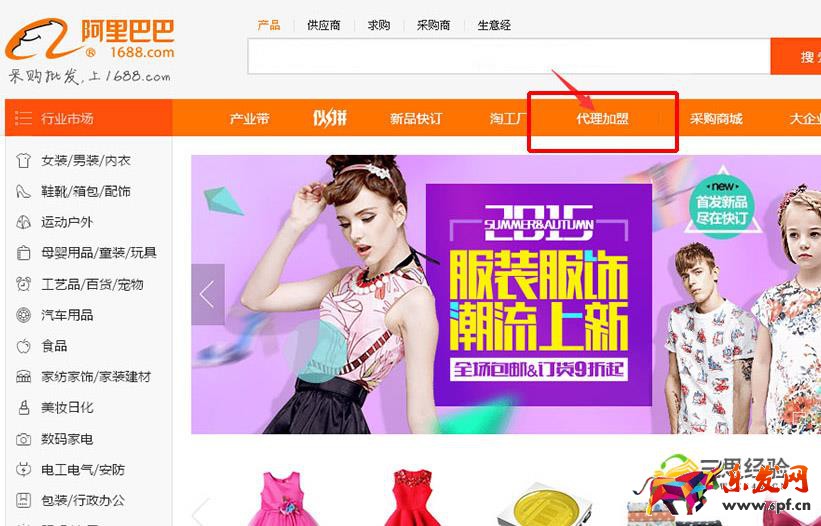 首先進入阿里巴巴首頁頁面,找到【代理加盟】后點擊。