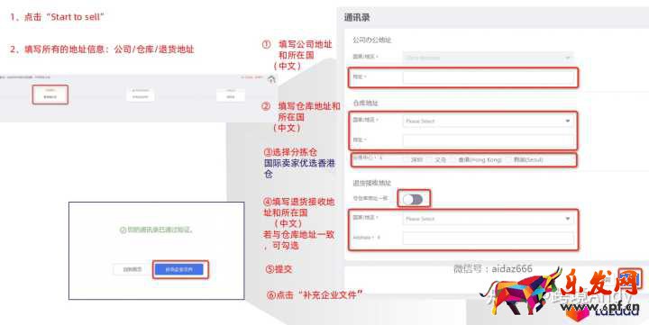 2、填寫所有的地址信息:公司/倉庫/退貨地址