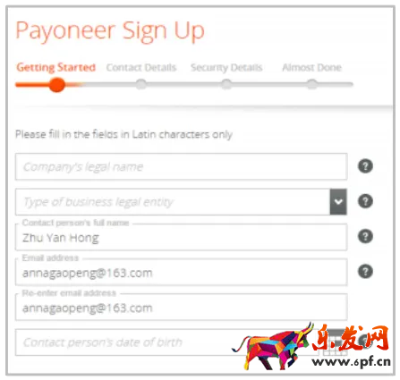 4、接著是填寫姓名、聯系方式、地址等信息,記住要用英文或拼音如實填寫,然后還要按要求上傳營業執照掃描件。