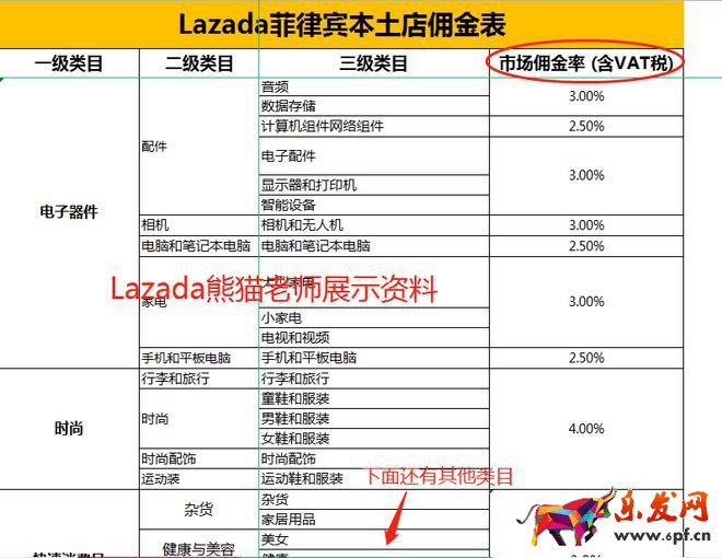 我們從Lazada菲律賓本土傭金類目表中可以看到,一級類目電子器件下的三級類目音頻是收取3%的類目傭金,同一個一級下的計算機組件網絡組件是收取2.5%的類目傭金,這也就是為什么Lazada菲律賓本土店鋪的傭金是2.5%-4%的原因了。
