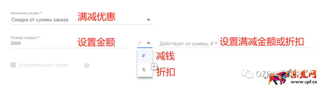簡單明了,沒有什么花里胡哨,就是打折,我們可以設計這次的活動最低折扣,可以減百分之幾。如果你也參加了OZON的活動,在買家進行付款時,OZON系統會自動選擇最低的折扣展現給買家。并且附加折扣只有在這里才可以進行選擇。