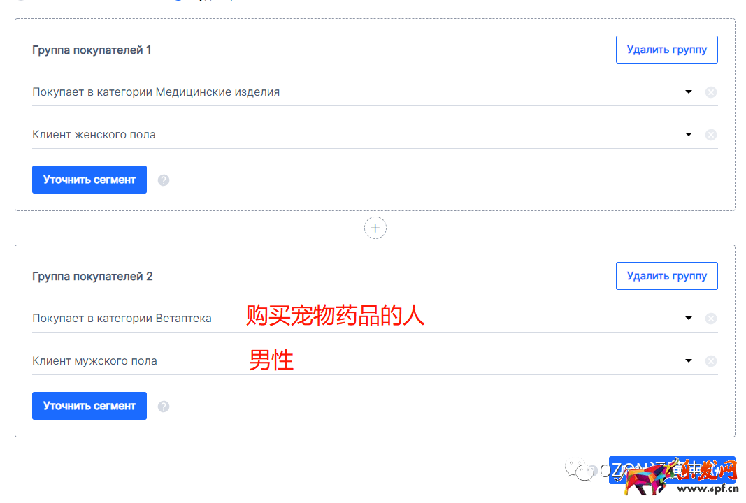在這里我們有添加了“購買寵物藥品的人”和“男性”,最終得到享受我們這次優惠的人群,是購買醫療設備的女性和購買寵物藥品的男性。