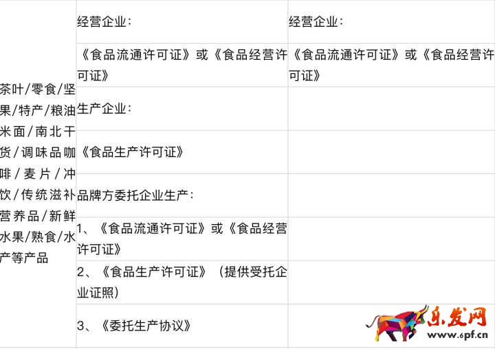 如果是個體工商店或者企業店店話需要上傳資質:一般的是《食品流通許可證》或《食品經營許可證》如果酒類肉類需要備案的資質等。