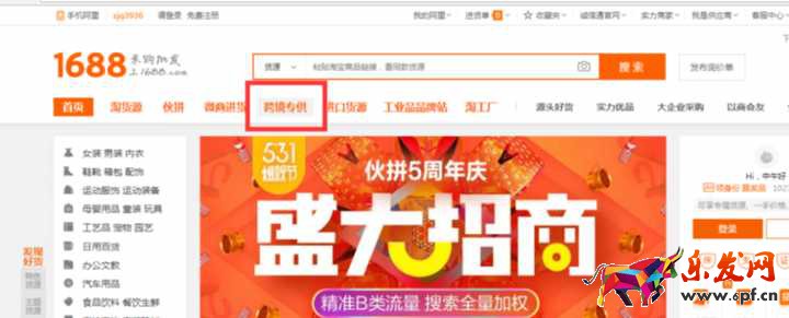打開https://www.1688.com進入1688.選擇【跨境專供】。