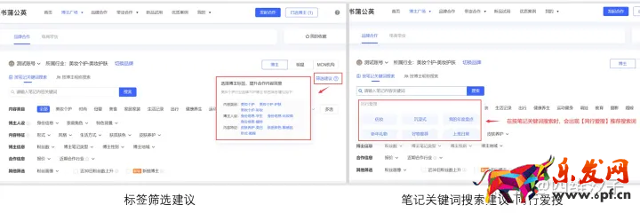 根據(jù)品牌所在行業(yè)進(jìn)行內(nèi)容相關(guān)性初篩,「內(nèi)容類目」?jié)M足行業(yè)內(nèi)容特征的篩選,「博主人設(shè)、特征標(biāo)簽、按筆記關(guān)鍵詞搜索」支持細(xì)分需求的篩選??稍诓┲鲝V場查看篩選建議。