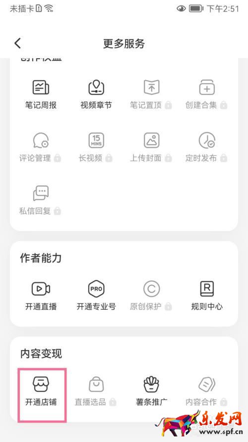 4 打開更多服務的界面點擊開通店鋪選項