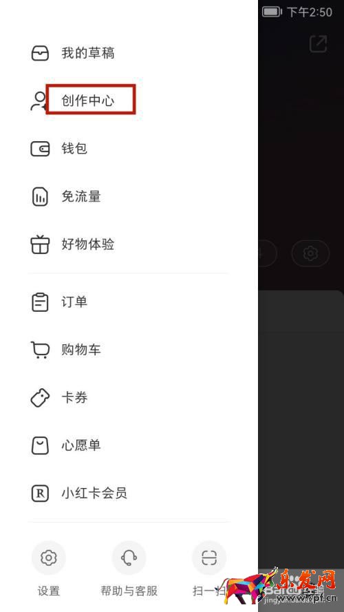 2 打開左傾欄點擊創作中心選項