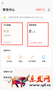 4、帶貨中心左邊顯示的是當天賣貨數量的詳細數據,右邊是櫥窗管理,上架的商品