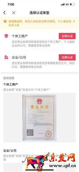3.立即開通:選擇店鋪主體。