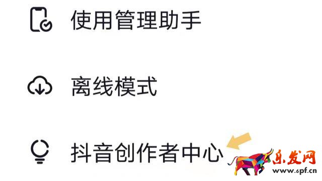 點(diǎn)擊三條橫線,在彈出的界面里找到抖音創(chuàng)作者中心選項(xiàng)。如下圖: