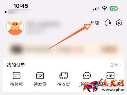 1 打開阿里巴巴進入【我的】頁面,點擊右上方【開店】。