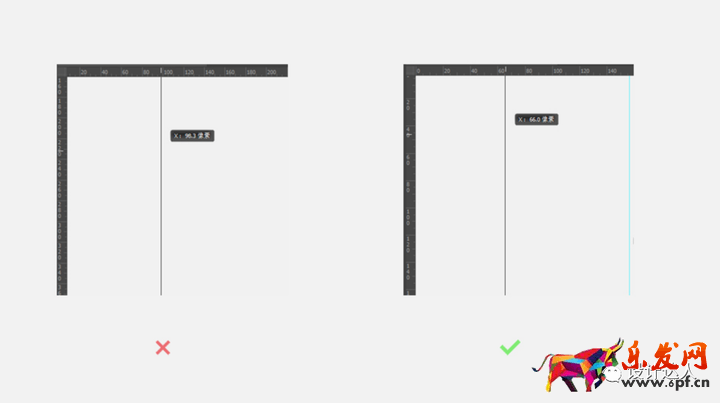 推薦拉輔助線的是按住shift,輔助線會以1、10這樣的整數(shù)變化,不會出現(xiàn)小數(shù)點(diǎn)的輔助線,避免在對齊的時候出現(xiàn)1px的誤差,被說成是粗心的失誤。