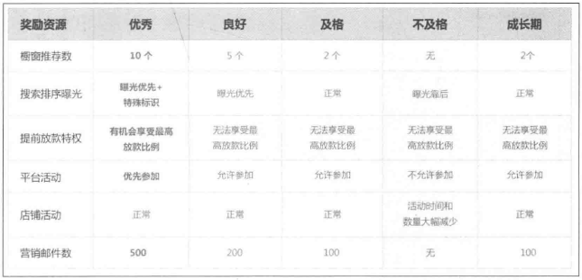 不同等級的賣家將在櫥窗數(shù)量、搜索排序曝光、提前放款、平臺活動(dòng)、店鋪活動(dòng)等方面享有不同的資源。