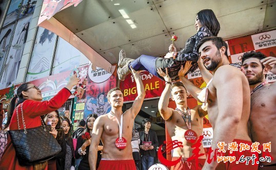 羊城晚報(bào)訊 記者 孫晶報(bào)道:臨近年底,各家百貨費(fèi)盡心機(jī)吸引消費(fèi)者,但光是打折肯定不夠,這不,大冷天百名健碩型男在商場門口齊露胸肌,足以讓師奶們尖叫了。29日,廣州某百貨門口就上演了這樣“露肉大戲”。